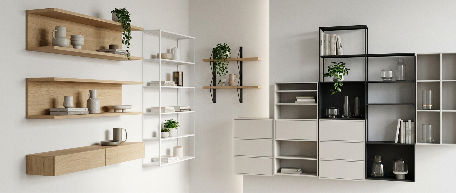 Explore our range of versatile wall-mounted storage solutions. From industrial-style bracket shelves to contemporary display units, these pieces offer practical storage while making a strong design statement.